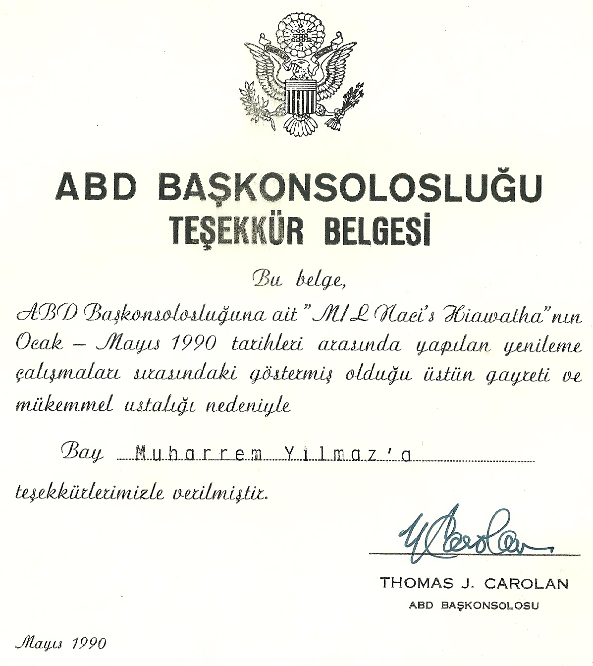 Muharrem YILMAZ, he was born in Cide, Kastamonu, in 1937. He started to work as an apprentice with one of the best wooden boat manifacturers of his time, connoisseur Hüsnü, in İstinye, İstanbul, and he worked with him until 1951. He worked as a qualified workman from 1951 to 1957 in Ayvansaray. During the next 3 years, he did his military service. Between 1960 and 1970, he worked as a connoisseur in Ayvansaray. He opened his own shipyard in Salacak in 1970. He has been working in his shipyard in Tuzla with his son, MUHTEREM YILMAZ since 1991.